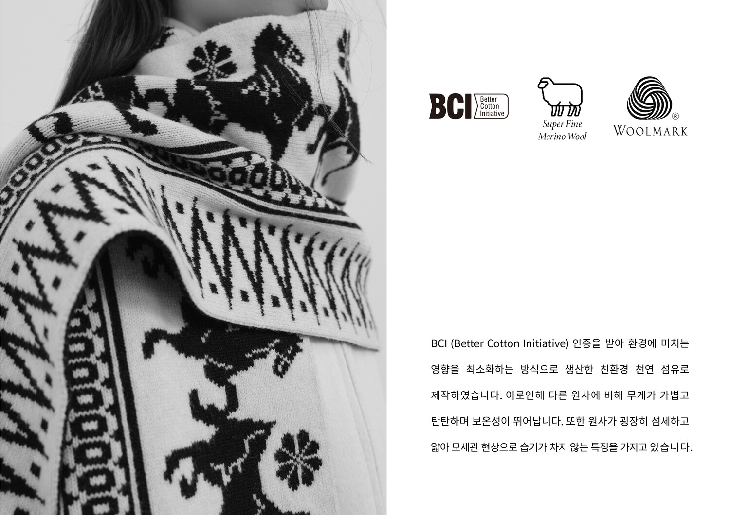 · 슈퍼파인 메리노울과 친환경 코튼을 사용한 천연 100% 원사로 제작되어 가볍고 탄탄하며 보온성이 뛰어남.